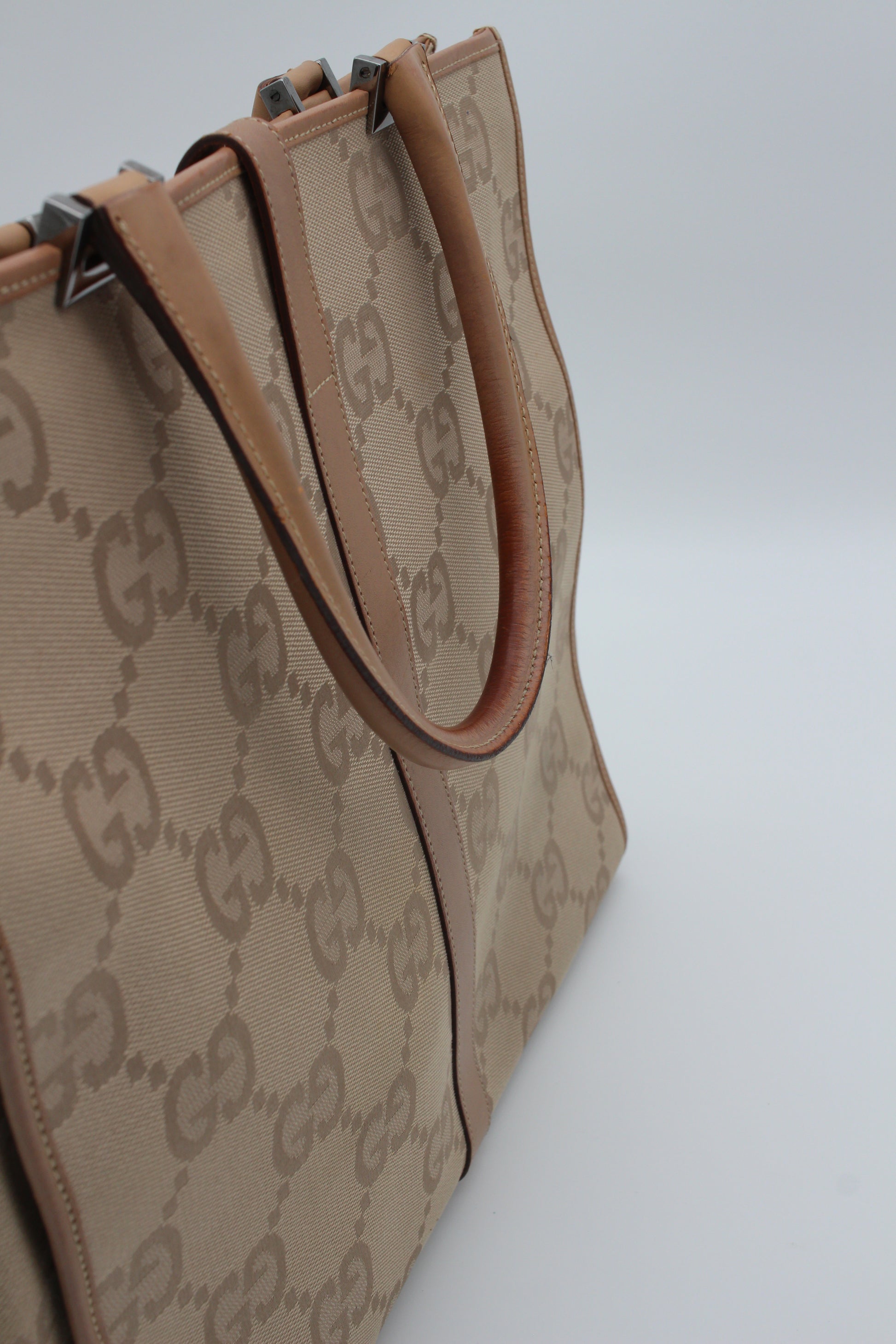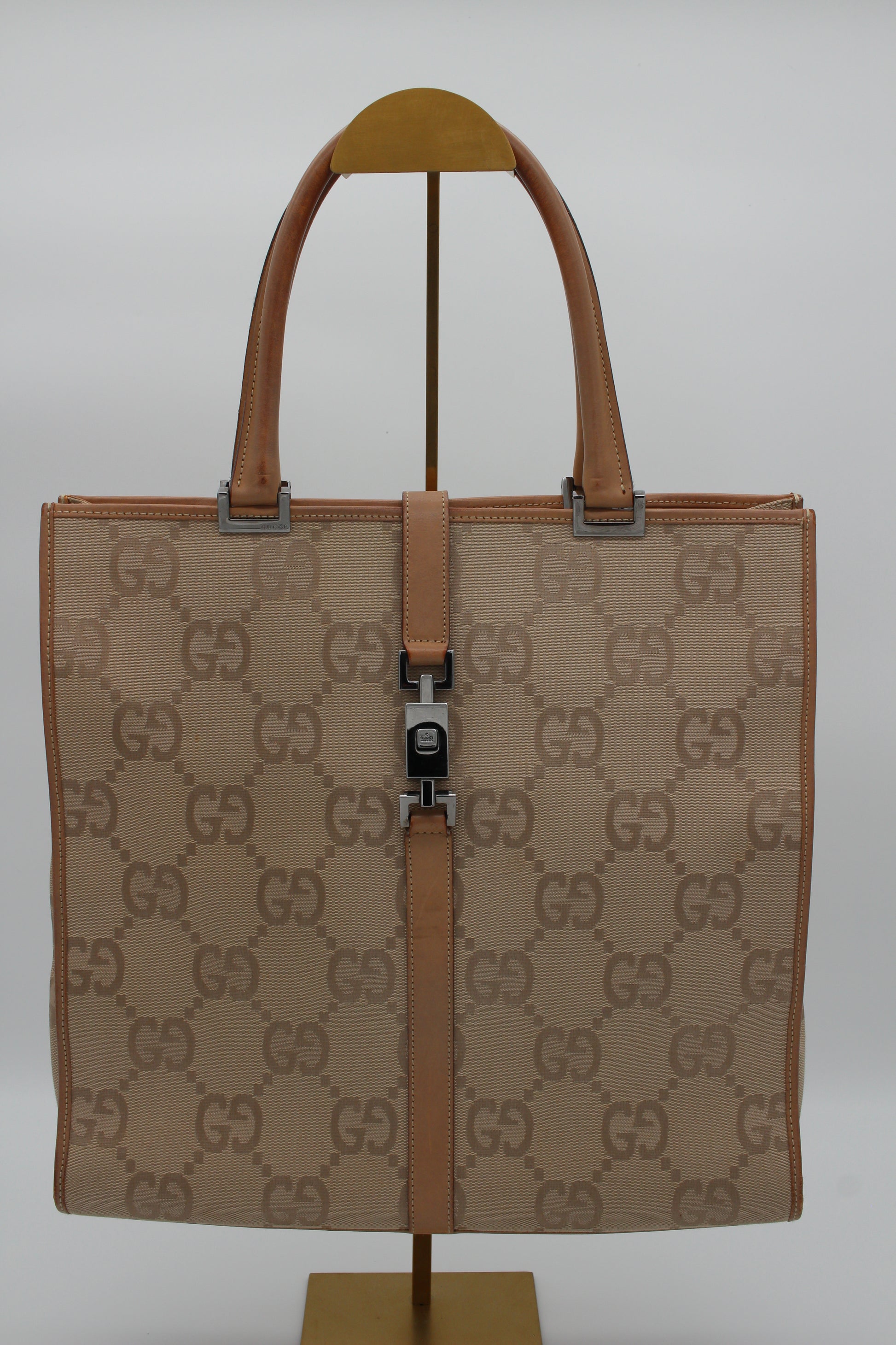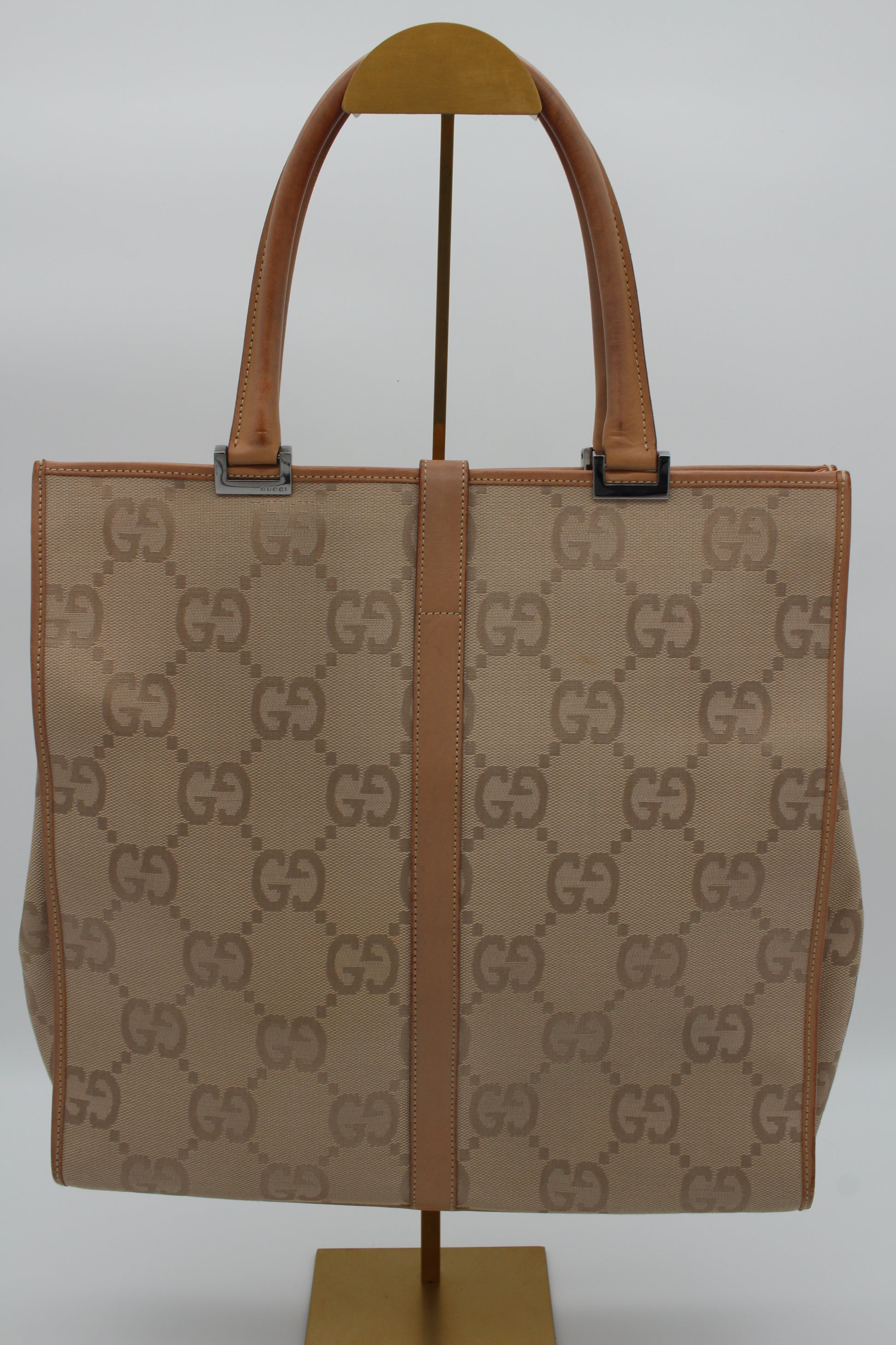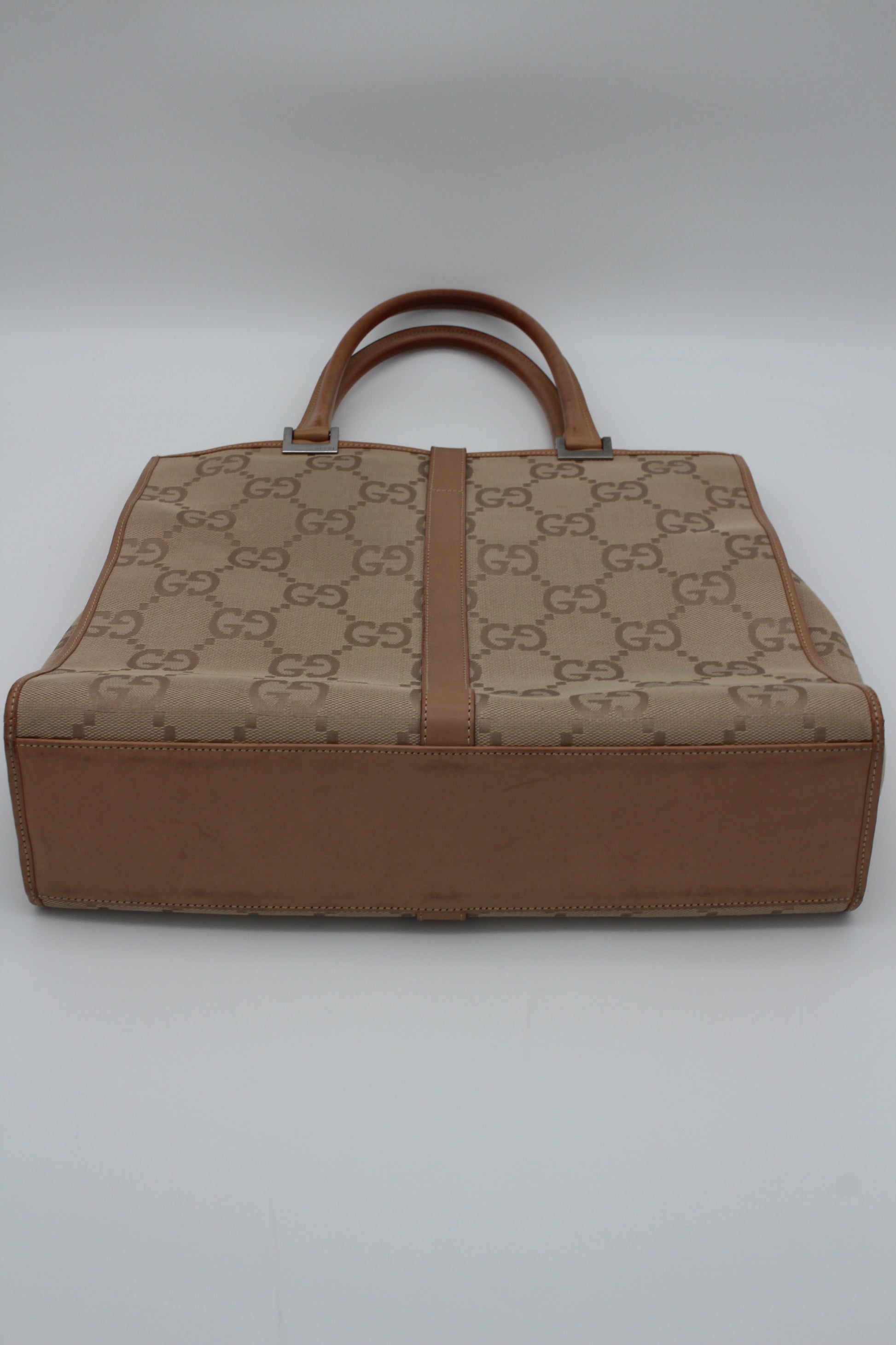This pre-loved Gucci bag is made from beige GG canvas with beige leather details and silver-tone hardware. The bag has a hook closure and inside there is one zip pocket. The serial number is 0021064 1669.