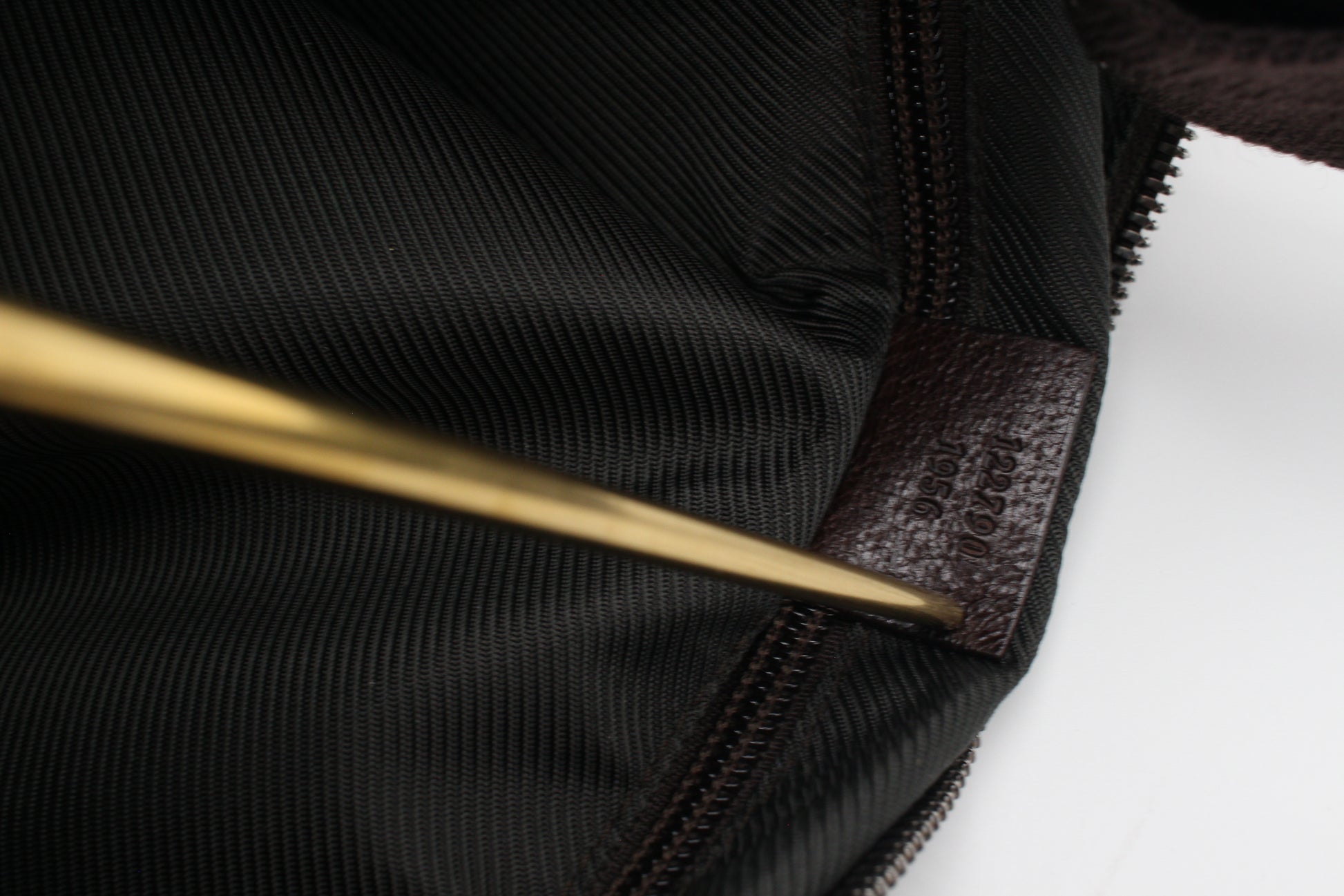 This pre-loved Gucci Half Moon bag is crafted from beige GG canvas, accented with brown leather and silver-tone hardware. The bag has an adjustable strap, allowing you to wear it crossbody or on the shoulder The serial number is 122790 1956.