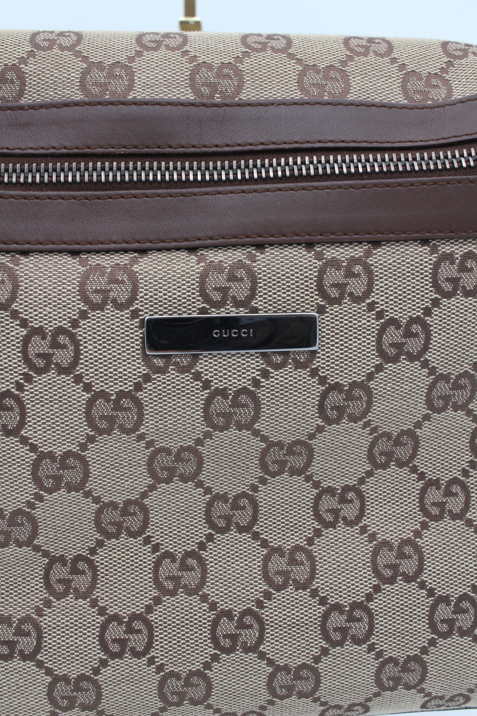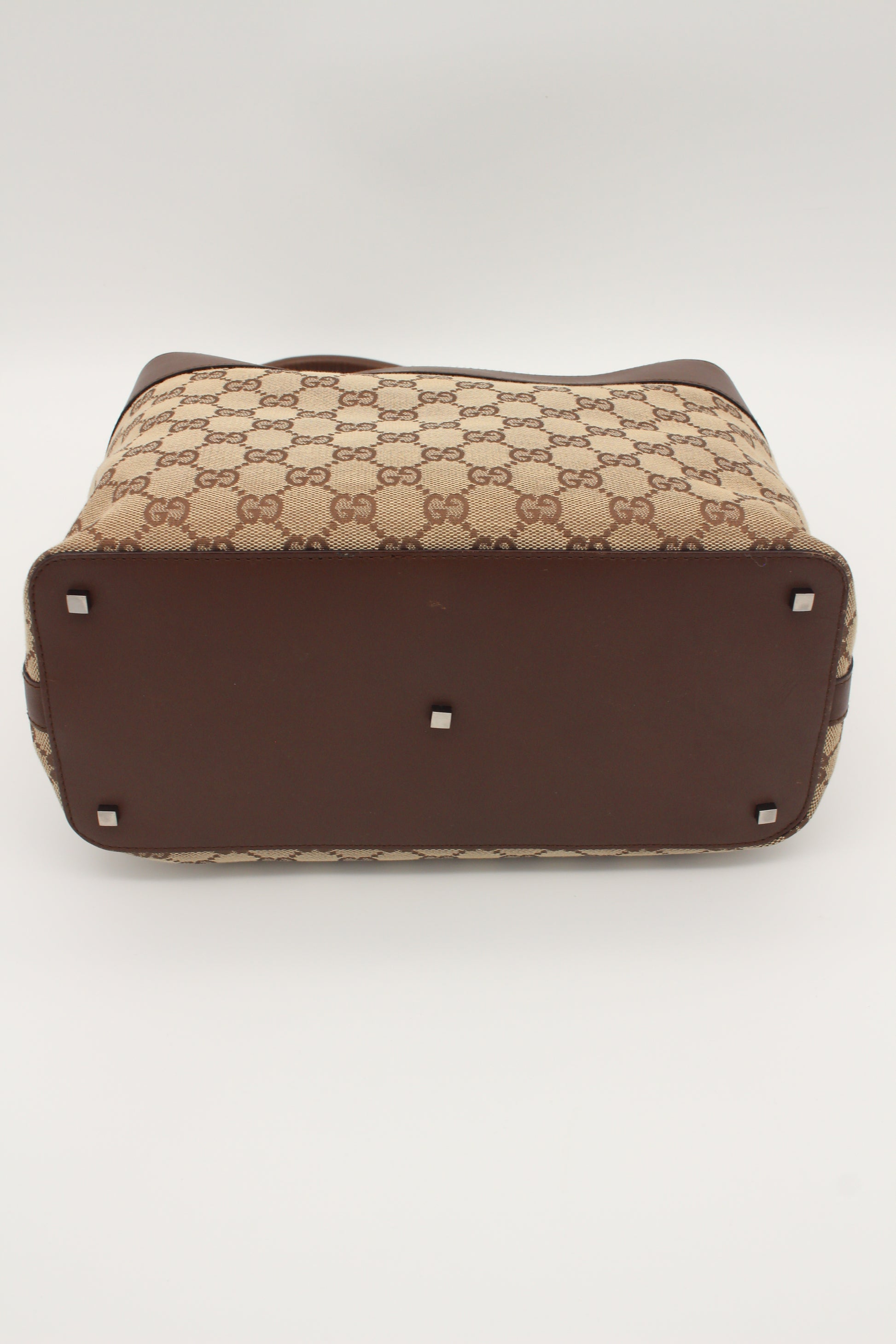 This pre-loved Gucci bag is crafted from beige GG canvas, accented with brown leather and silver-tone hardware. The serial number is 001 4298 002058.