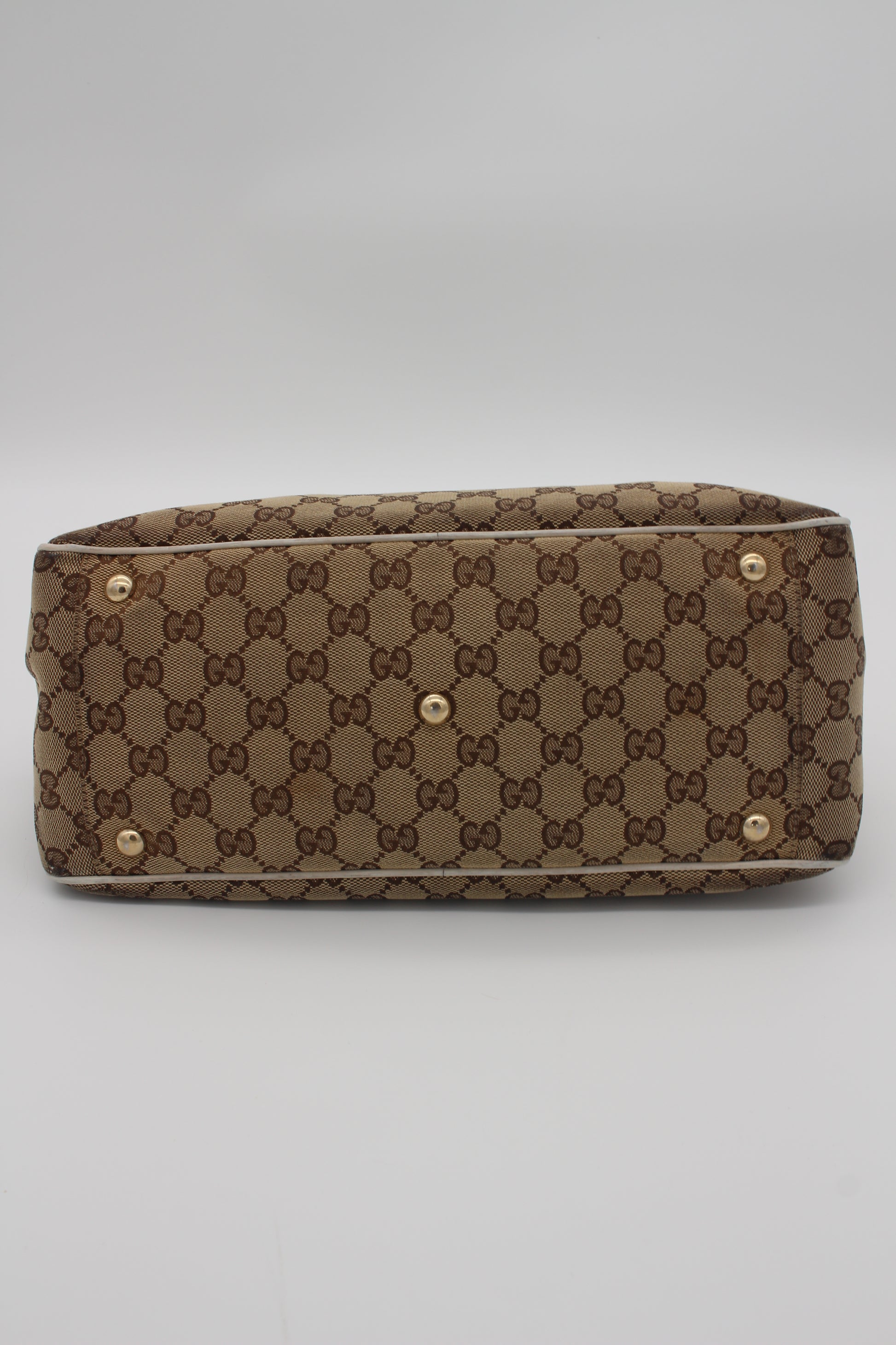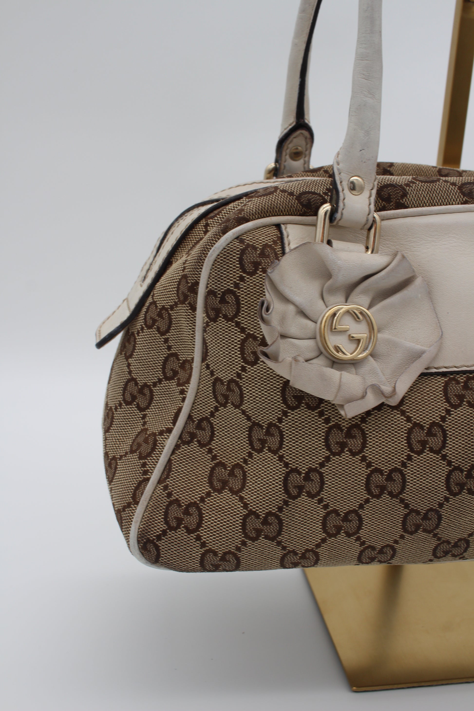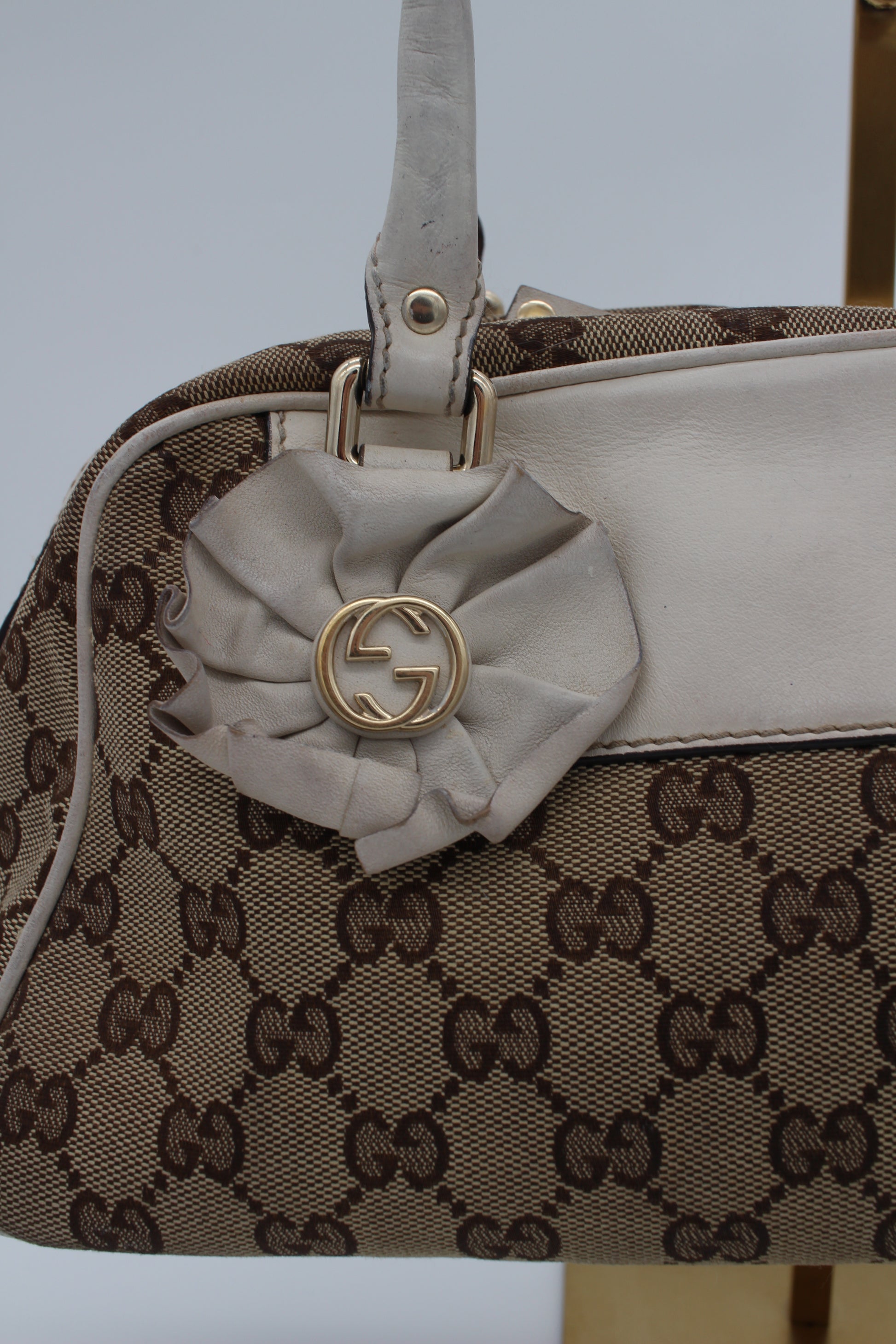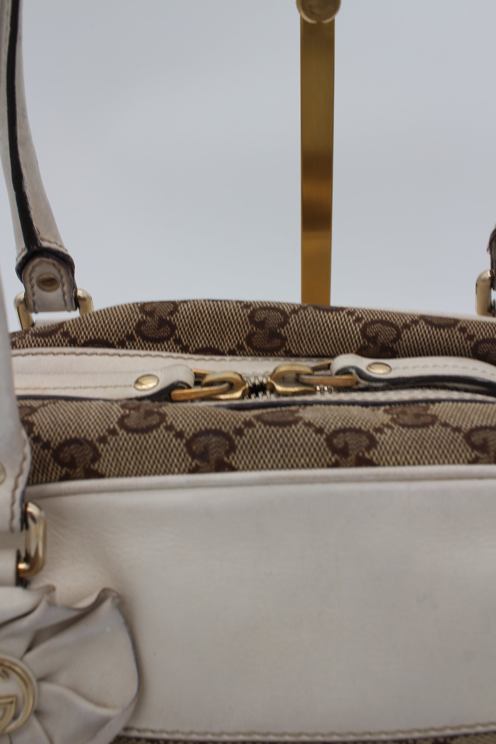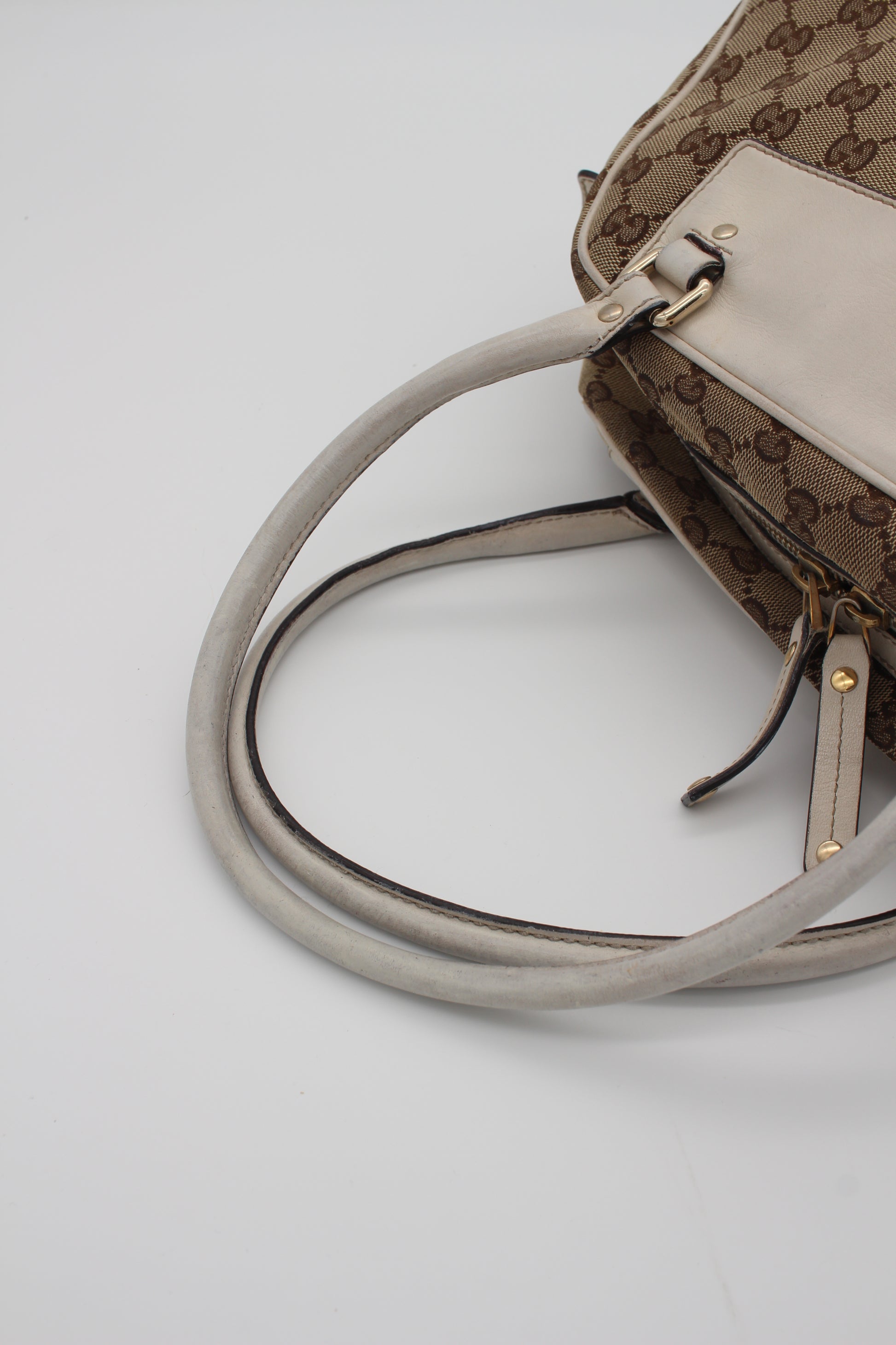 This pre-loved Gucci bag is crafted from beige GG canvas, accented with ivory leather and gold-tone hardware. Inside there is one main compartment with a small pocket. The serial number is 189827 204046.